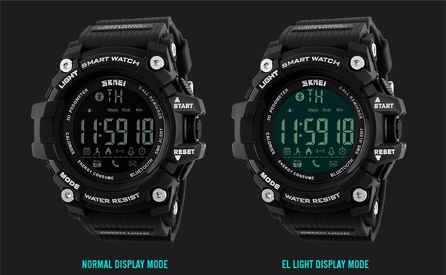 Особливістю Smart годин Skmei 1227 є синхронізація зі смартфоном на базі Android або IOS. Версії ОС для синхронізації: Android і IOS 4.3. При підключенні розумних годин Skmei до свого смартфону Ви зможете переглядати пройдену дистанцію(крокомір), витрачені калорії, прогрес виконання мети. Ця інформація буде доступна як на смартфоні, так і на годиннику. Також на годиннику буде іти звуковий сигнал і відображення інформації при вхідному дзвінку мулі смс входить на телефон. У новій моделі Skmei з Blutooth присутня функція дистанційного керування камерою вашого смартфона, що обов'язково сподобатися любителям селфи. Корпус виконаний із сталі і покритий АВС пластиком що чудово збалансовано. Надійність корпусу і великий циферблат який повністю підкреслить Вашу мужність ідеально гармонує з ремінцем. Обов'язково присутній секундомір, будильник, надійна led-підсвічування,по-справжньому висока ступінь водонепроникності 5 ATM, відображення дня, числа, дати. І звичайно ж скло як і в попередніх моделях від skmei - ударостійке.